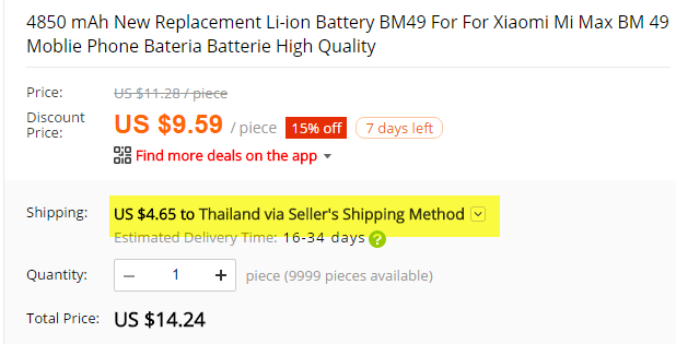 I assumed all the Chinese vendors had stopped shipping batteries to Thailand.