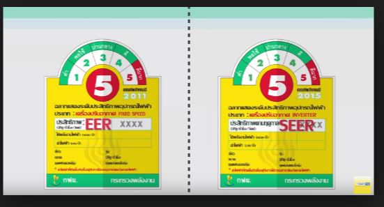 On the 1-5 label it will say whether it's using EER or SEER, usually in the white space below the 1 to 5 half wheel....but in other cases it may be elsewhere on the label...and the label may or may not have English on it.   Wide variety of labels used.    You'll also see a "year" below the half wheel which will probably be 2011 or earlier is using an EER  energy rating and some date after 2011 like 2015 for a SEER energy rating.
