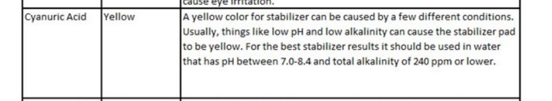 - "Cyanuric acid": for what ? When you have a salted SP you don't need to use a lot of acids, so the CYA is always low