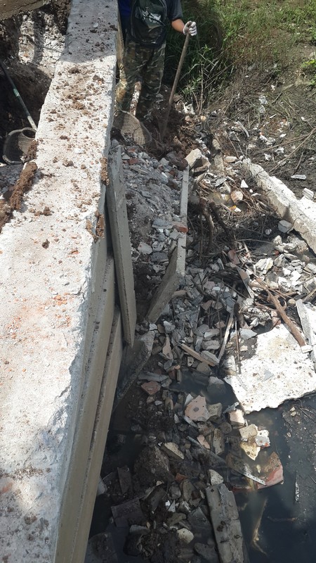 The section which failed is one of the earlier bits we had done, small H piles pushed in with a backhoe, with concrete planks slid into the slots. The later sections