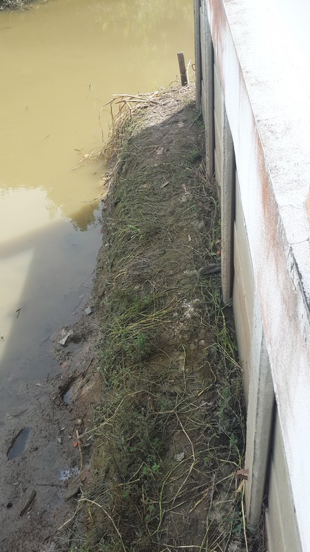 First we knew was when a small crack appeared, didn't worry, small crack. Within a couple of days it became a big crack and a great chunk of the garden vanished into the khlong.