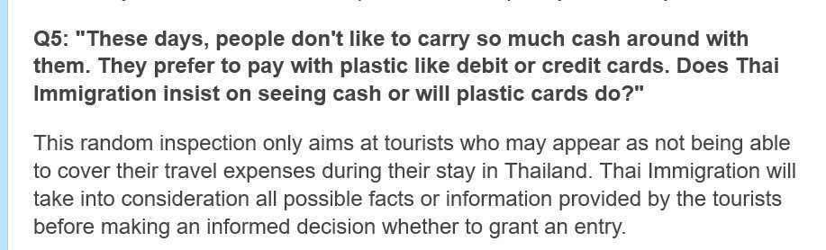 Interesting quote "aims at tourists who may appear as not being able to cover their travel expenses during their stay in Thailand"